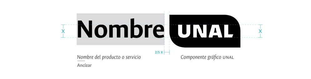 - La altura (X) del nombre del producto debe ser igual a la altura de la abreviatura UNAL, ver imagen "Estructura para la creación de nuevas marcas derivadas".